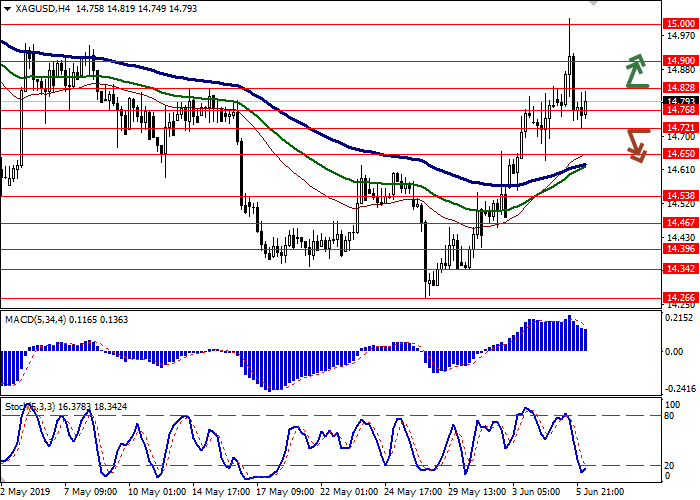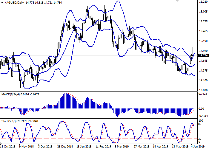 昨天,银价再度创下4月底以来的高点,但未能在该水平盘整,因为美元在整个市场范围内的回调范围内上涨。报价仍受到美国与中国、欧盟和墨西哥贸易战扩大的重大威胁的支持。昨天,特朗普证实,他打算从6月10日起对所有墨西哥商品征收进口关税。美元面临的额外压力提供了美联储降息的可能性。美联储代表最近积极考虑降息。