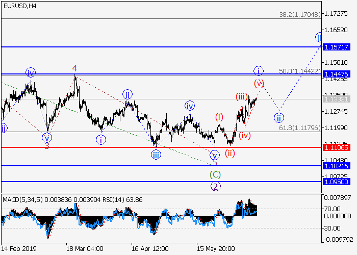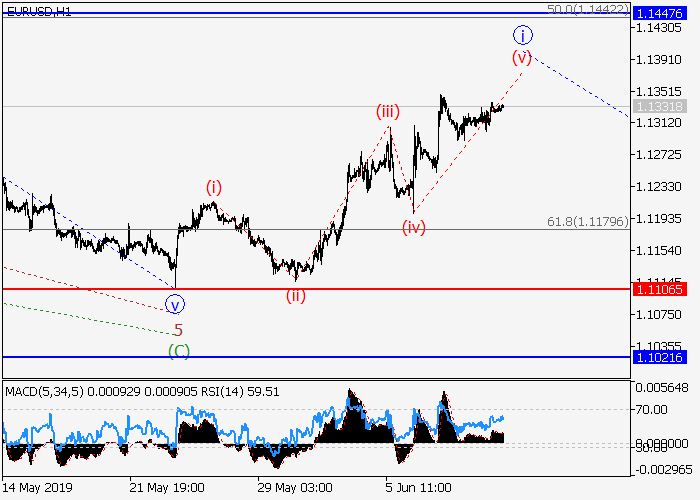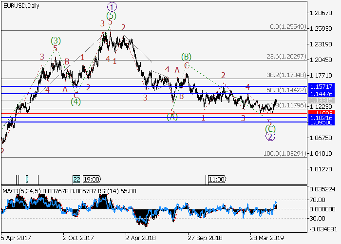 日线图中,较高水平的下行修正已形成第二波2,达到修正水平62%,呈Z字型,与2 的波(C)呈对角线。目前,较高水平3的第三波正开始发展,其中,3的(1)的1的较低水平i的第一波正在形成。如果假设正确,1的修正ii结束后,价格将会升至1.1447–1.1571水平。该情况的关键止损水平为1.1106。