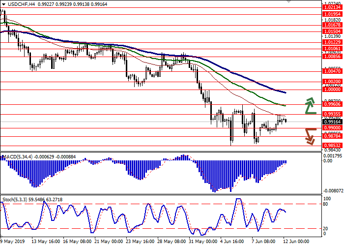 可以在价格突破0.9900后,开设空头头寸,目标为0.9853或0.9820。止损水平为0.9930。
