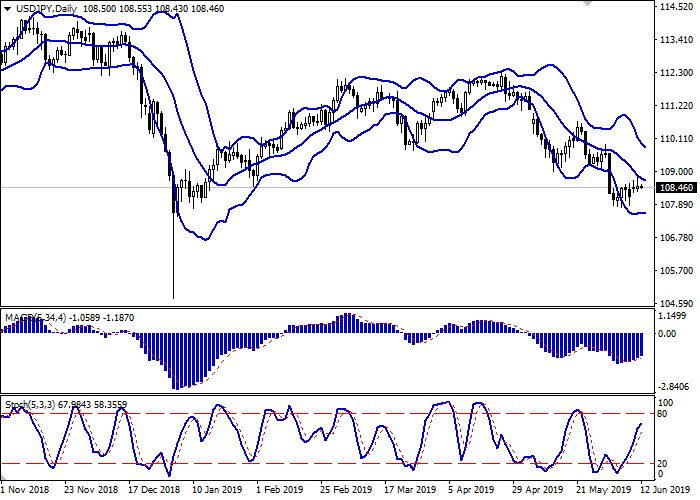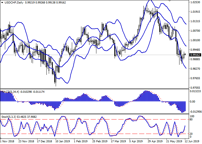 日线图上,波林带下降。价格范围几乎没有变化,相对于当前的活动水平仍然相当大。平滑异同移动平均线反转向上,形成买入信号(图柱位于信号线上方)。随机指标向上反转,位于工作区域的中间。指标目前的读数反映了超短期内向上动态发展的可能性。