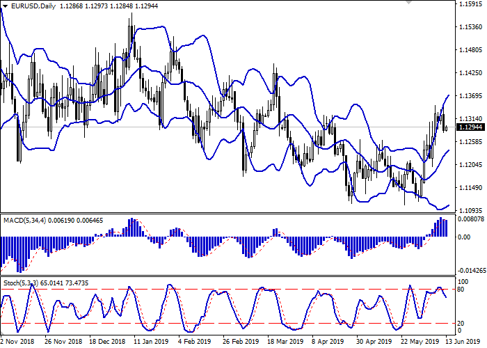 日线图上,布林带稳定增长。价格区间从上方开始扩大,表明强“看涨”冲动在中短期内持续存在。平滑异同移动平均线向下反转,形成卖出信号(图柱试图在信号线下盘整)。随机指标反转进入下行平面,没有达到其高点。