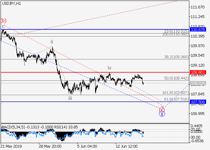 4小时图中,下行修正发展为3的波ii,呈Z字型。目前,ii的波(c)正形成动量,其中ii的(c)的第五波v正在发展。如果假设正确,价格将会跌至107.50。该情况的关键止损水平为108.80。