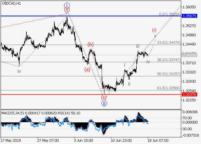4小时图中,较高水平3的第三波在发展,其中局部修正已发展为3的波ii。目前,3的波iii正开始形成其中iii的下行修正(i)的第一波正在发展。如果假设正确,价格将会升至1.3567–1.3700。该情况的关键止损水平为1.3237。