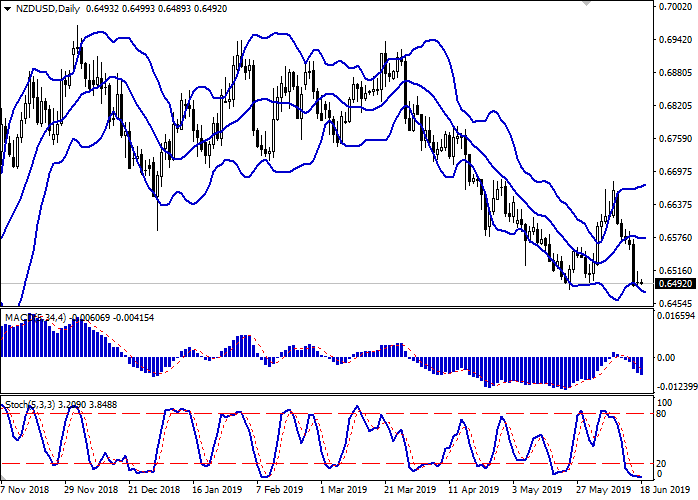 日线图上,布林带正积极增长。价格区间正迅速缩小,反映出上周出现了坚定的“看跌”趋势。平滑异同移动平均线指数正在下跌,保持强卖出信号(图柱位于信号线下)。随机指数在接近低点时反转成水平面,这是对当前交易周初出现的修正增长做出的反应。