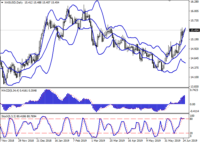 昨天,银价温和上涨,从上周交易结束时的回调中反弹。美元的弱仓位以及日益增长的市场焦虑情绪支持了这一交易工具,有助于购买更安全的资产。投资者关注的焦点是美国和伊朗及中国的冲突。交易员们对特朗普和习近平在20国集团(G20)峰会上的会晤寄予厚望。G20峰会将于本周末在日本举行。