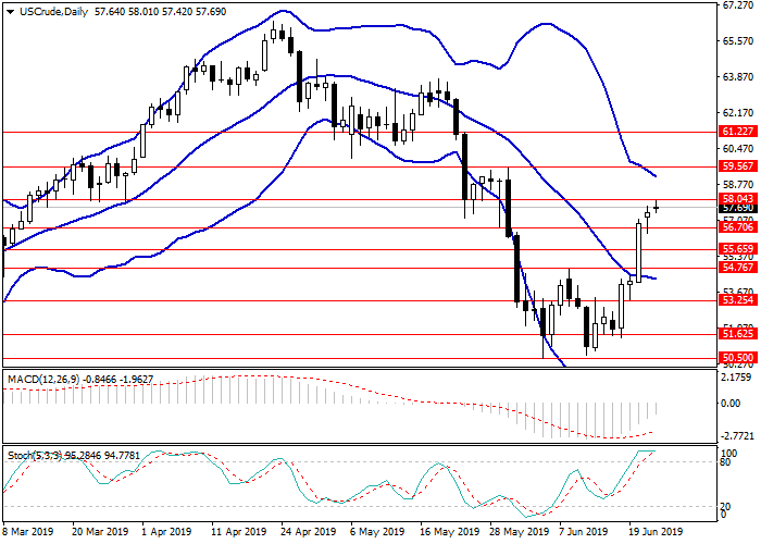 本周初,油价离开周五刷新的局部高点,回到跌势。油价下跌的原因是:在全球经济放缓和某些地区紧张局势加剧的背景下,石油产品需求低。紧张局势尤其指的是美伊冲突,在美国无人机在波斯湾被击落后,冲突加剧。且中美之间的冲突仍未解决。不过,投资者对本周末在日本举行的G20峰会上特朗普和习近平会晤抱有很高的期望。
