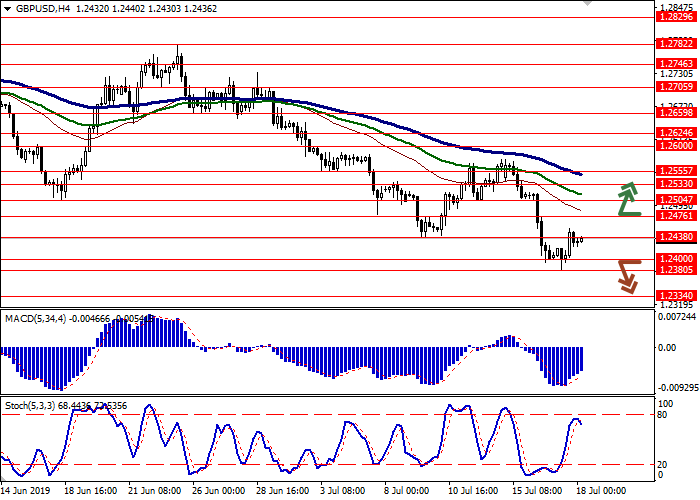 本周,该货币对走势并不明朗:先是跌至1.1200水平,但随后开始增长。建筑市场疲弱的数据和美中贸易谈判的艰难局面令美元承压。六月份建筑许可证由129.9万减至122万。新建住房建设指标从126.5万套下降到125.3万套。