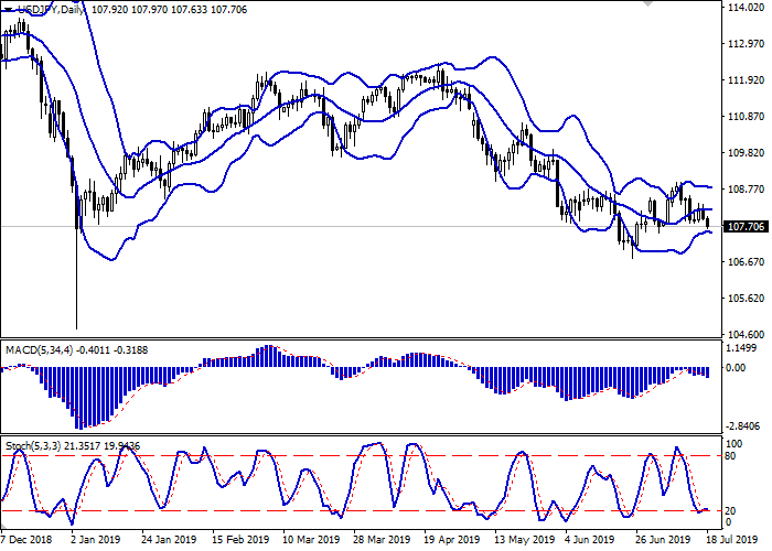 4小时图中,出现上行修正,该指数沿着布林带下线减少,指标区间扩大,显示出短期内下行趋势可能会保持。平滑异同移动平均线图柱位于负区,其体量最小,信号线即将向下穿过零线水平,之后可能会形成空头开仓信号。随机指标向下穿过超卖区边界;做空信号仍有效。
