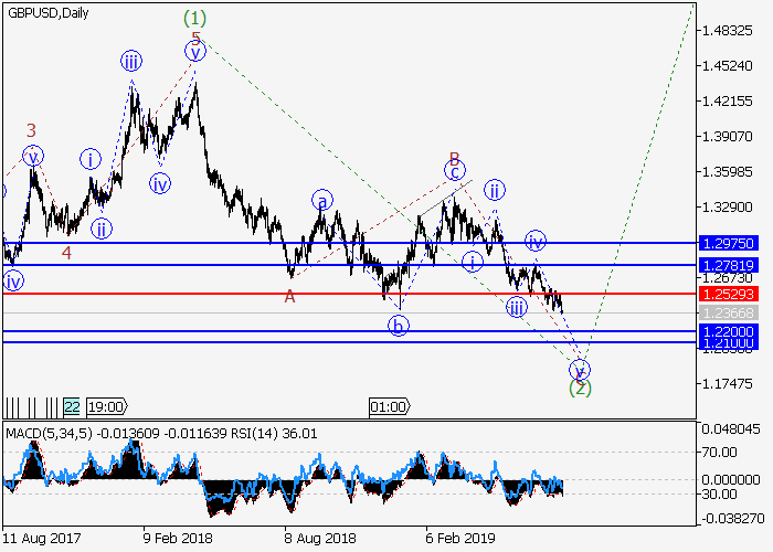 修正期间,价格至1.2529水平以下时,可以开设空头头寸,目标为1.2200–1.2100水平。实施期:7天以上。