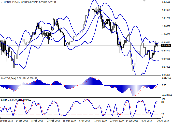日线图中,上行趋势仍有效。该交易工具在布林带中线附近交易;指标区间收窄,可能会形成横向趋势。平滑异同移动平均线图柱位于正区,保持多头开仓信号。随机指标位于中立区,振荡线从超卖区边界反转上行。