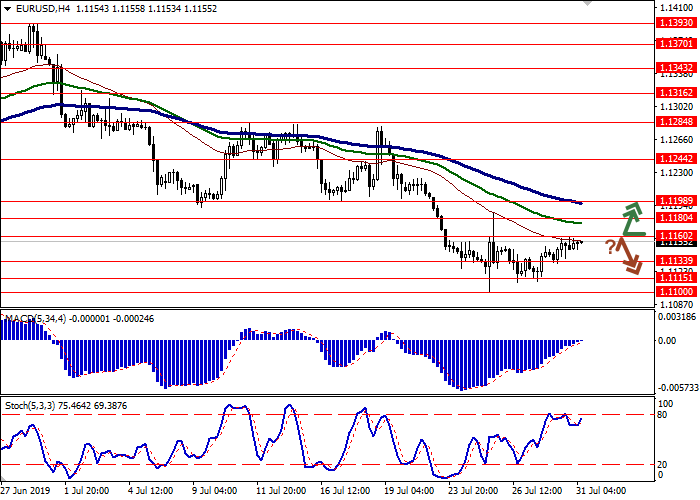 昨天,欧元兑美元汇率走势模糊不清。欧元因欧盟公布的宏观经济数据喜忧参半而走软,而美元进一步增长受到美联储在7月31日周三会议上降息预期的阻碍。7月欧盟消费者信心指数从上月的-5.6点降至-7.4点。分析师预计该指数将下跌至-7.0点。7月欧盟商业景气指数从0.17点降至-0.12点,也逊于市场预估的0.08点。法国的数据也令人失望。因此,根据初步估计,法国2019年第二季度GDP增速从去年同期的0.3%放缓至0.2%。6月份消费者支出指数环比下降0.1%,而上个月上升0.3%。