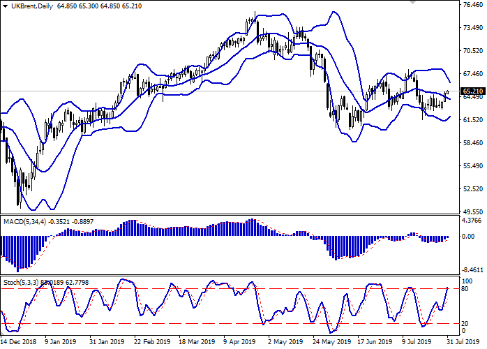 日线图上,布林带稳步下降。价格区间收窄,反映出短期内交易动态模糊。平滑异同移动平均线增长,保持适度买入信号(图柱位于信号线上方)。随机指标动态相似;位于其工作区域的中心。