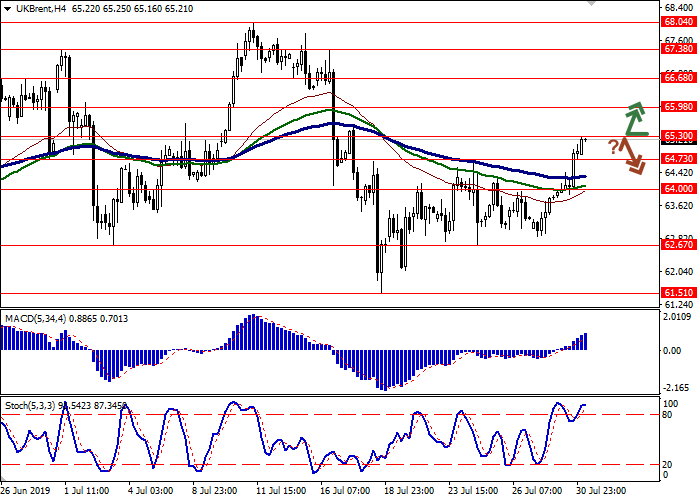 价格突破65.30时,可以开设多头头寸。止盈水平为66.68 或67.38。止损水平为64.50。