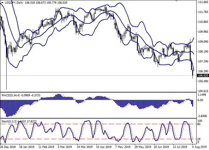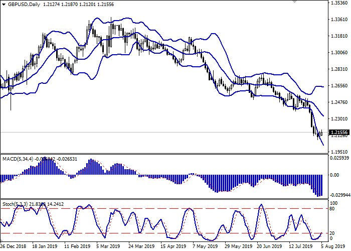 日线图中布林带呈稳定下降趋势。价格区间正在扩大,但仍不及“看跌”趋势的发展。平滑异同移动平均线下跌,保持稳定的卖出信号(位于信号线以下)。随机指标保持稳定的向下方向,但接近其低点,表明该货币对超短期内强超卖。