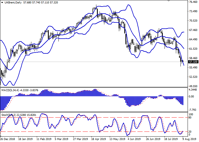 日线图中布林带呈稳定下降趋势。价格区间正在扩大,不及看跌趋势的发展。平滑异同移动平均线下跌,保持温和的卖出信号(位于信号线下方)。随机指标触及低点后,逐渐反转上行,显示出短期或超短期修正增长的风险。