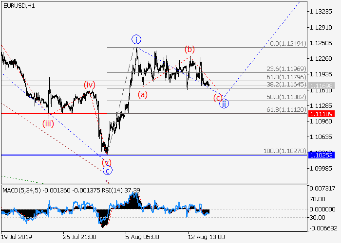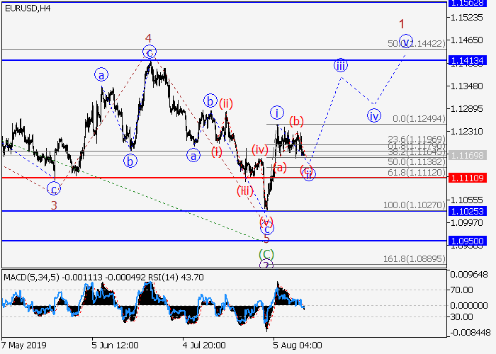 4小时图中,较高水平的下行修正已发展成波2,其中,2的波(C)已形成。目前,较高水平3的第三波正开始发展,其中,1的较低水平i的进入波已形成,1的局部修正ii正在发展。如果假设正确,修正结束后,该货币对将升至1.1413–1.1562。该情况的关键止损水平为1.1110。