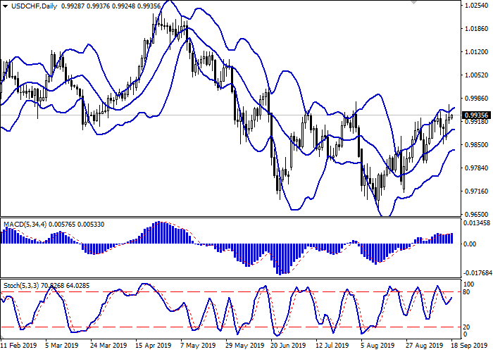 日线图中,布林带活跃生长。价格区间正在扩大,但未及该工具交易活动的急剧增加。平滑异同移动平均线指标正在增长,保持相当稳定的买入信号(位于信号线以上)。随机指标保持适度增长,并迅速接近其高点,这可能表明超短期内超买工具的风险。