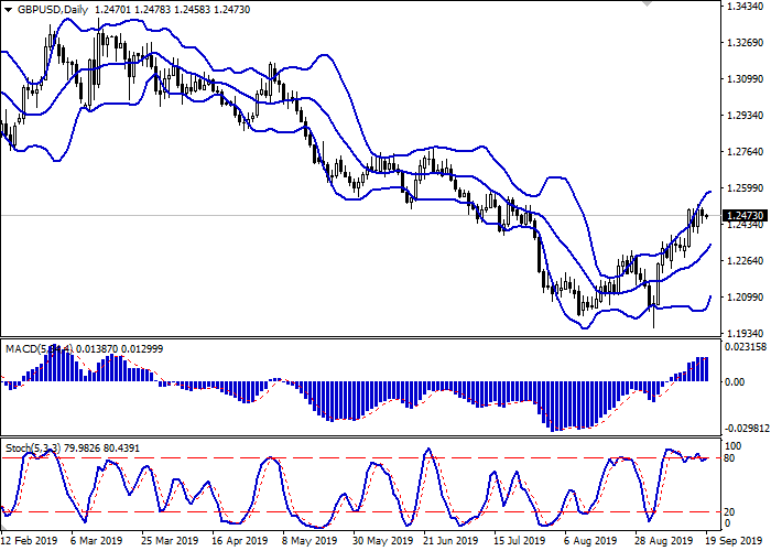 日线图中,布林带积极上涨。价格区间正在收窄,反映出最近几天交易动态模糊。平滑异同移动平均线正在增长,保持弱买入信号(位于信号线上方)。随机指标呈现出不确定动态,接近“80”水平,表明英镑超买风险增加。