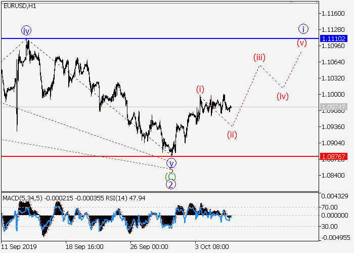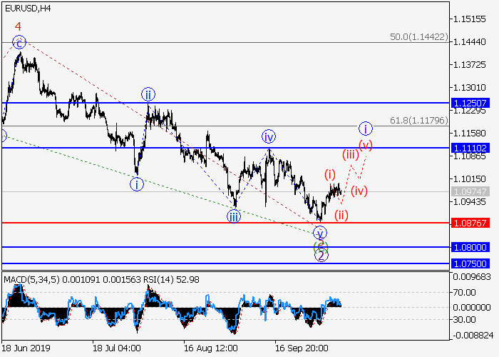4小时图中,较高水平的下行修正已发展为波2,其中2的(C)的第五波5已形成。目前,第三波3正开始发展,其中3的(1)的较低水平i的第一波正在形成。如果假设正确,价格将会升至1.1110–1.1250。该情况的关键止损水平为1.0876。