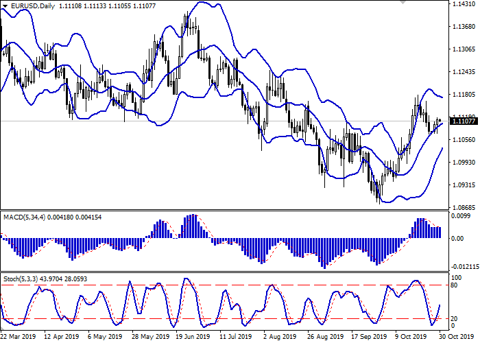 日线图中,布林带呈适度增长。价格区间正在收窄,反映出短期内交易的不确定性。平滑异同移动平均线上行反转,形成新的买入信号(位于信号线上方)。随机指标给出类似动态,但更活跃。目前的指标读数显示,超短期内将出现修正增长。