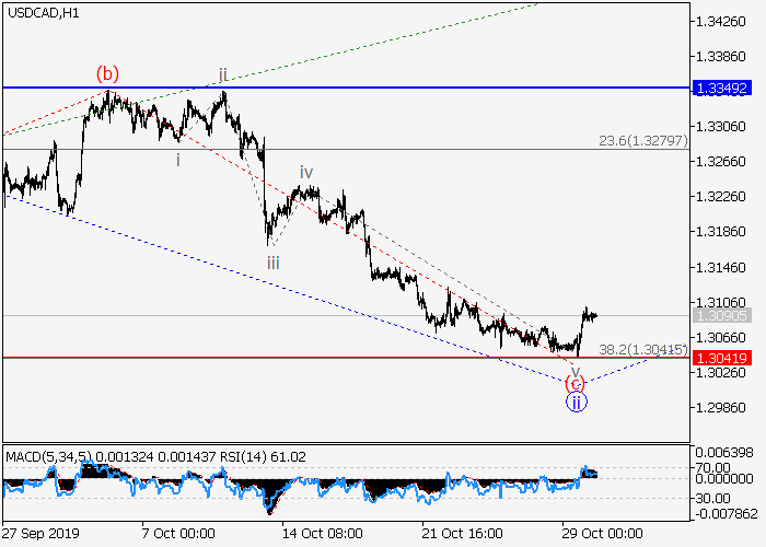 4小时图中,较高水平(3)的第三波在发展,其中下行修正已形成为(3)的1的波ii。目前,下行动量已形成为ii的波(c),(3)的1的波iii正开始发展。如果假设正确,价格将会在波内升至1.3349–1.3450水平。该情况的关键止损水平为1.3041。