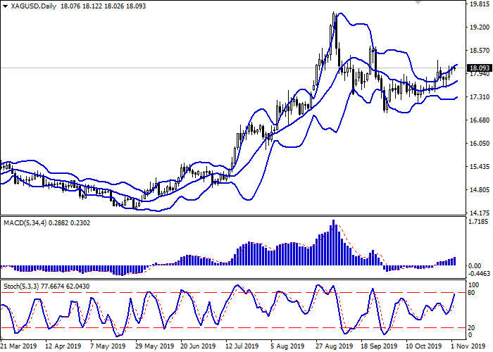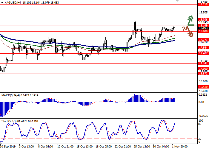 上周五,白银/美元价格小幅下跌,这是对中国公布积极的宏观经济数据的反应。此外,美国劳动力市场报告的结果好于预期,这也是避险资产需求下降的原因之一。最后,银价受到了美联储有关暂停降息周期声明的压力。10月30日星期三,美联储连续第三次降息25个基点。在随附的一份声明中指出,美联储将根据经济形势制定新的利率决定。
