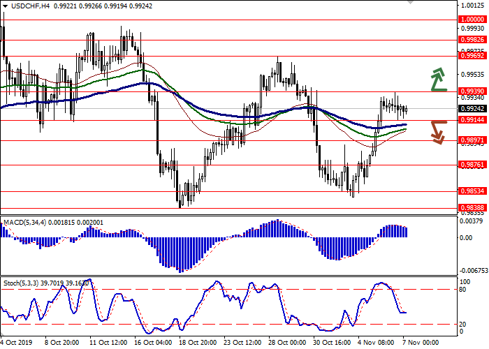 价格突破0.9939水平时,可以开设多头头寸。获利水平为0.9982 或1.0000。止损水平为0.9914。