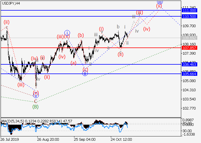 4小时图中,第三波iii在(C)的较高水平1的第一波内发展。目前,1的iii的较低水平(i)的第一波已形成,局部修正已结束为iii的波(ii),呈不规则平面,iii的波(iii)已开始发展。如果假设正确,价格将会升至110.50–111.00。该情况的关键止损水平为107.85。