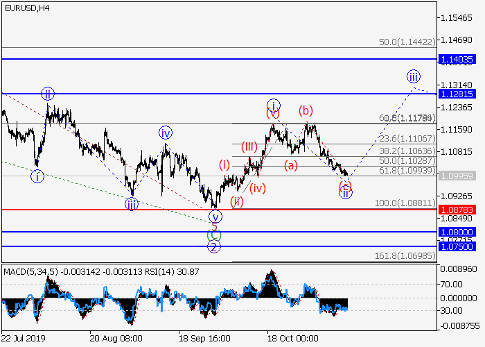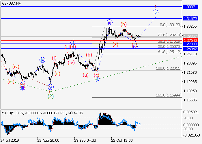 4小时图中,较高水平的下行修正已发展为波2,其中2的(C)的第五波5已形成。目前,3的(1)的1的较低水平的第一波已形成,下行修正作为1的波ii已结束发展,该货币对将会在1 的波iii中升至1.1281–1.1403。该情况的关键止损水平为1.0878。