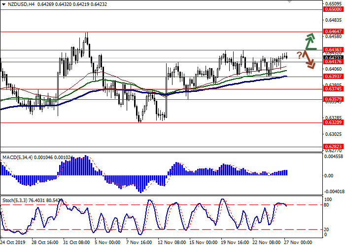 今天的亚洲市场上,新西兰元兑美元汇率稳定,接近其周度局部最高水平0.6432。昨天,新西兰零售销售动态的良好宏观经济数据,支持了该货币对看涨动态的发展。目前,新西兰出口数据又提供了温和的价格支持。截至10月底,出口额从43.6亿美元增至50.3亿美元,超出市场平均预期。同期进口数据也从56.8亿美元增加到60.5亿美元。10月份的贸易逆差为- 10.13亿美元,上期的逆差- 13.19亿美元,好于预测的- 16.21亿美元。