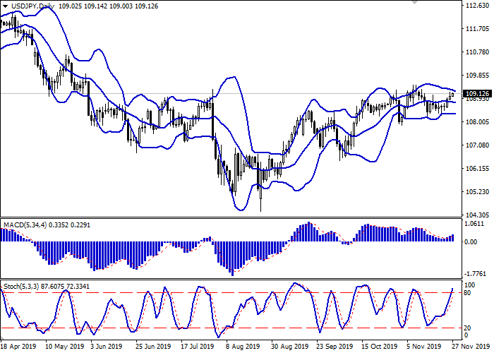 日线图中,布林带呈平面动态。价格区间略有收窄,未及短期内“看涨”趋势的发展。平滑异同移动平均线指标正在增长,保持适度买入信号(位于信号线之上)。随机指数保持上升趋势,但接近其高点,表明该货币对在超短期内超买。