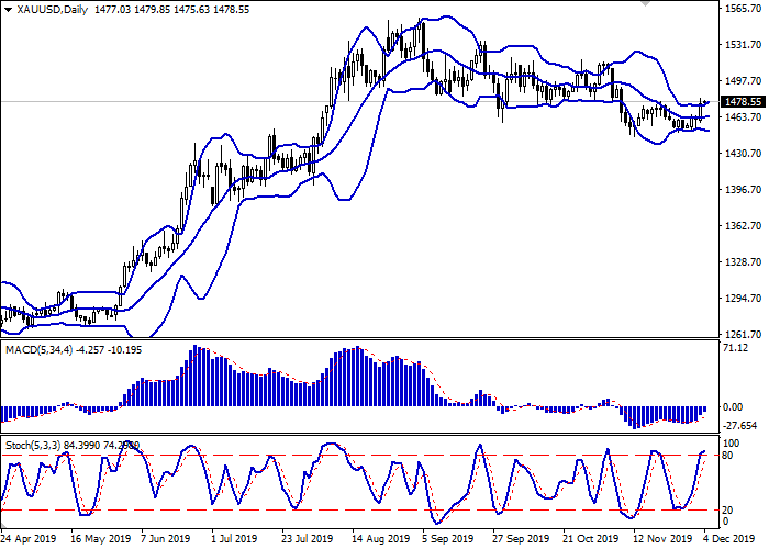 今天的亚洲市场上,金价稳定,接近前一天刷新的局部高点(1481.44)。美国对从巴西和阿根廷进口的钢铁和铝征收更高的关税后,投资者纷纷规避风险,推动了昨天油价的增长。此外,中美贸易协定可能要推迟到2020年11月美国总统选举后再签署,投资者对此反应消极。就当代世界的变化速度来说,这个时间期限问太长了。此外,特朗普再次威胁将要在12月15日提高对中国商品的进口关税,这可能导致长期以来取得的所有谈判进展“付之一炬”。