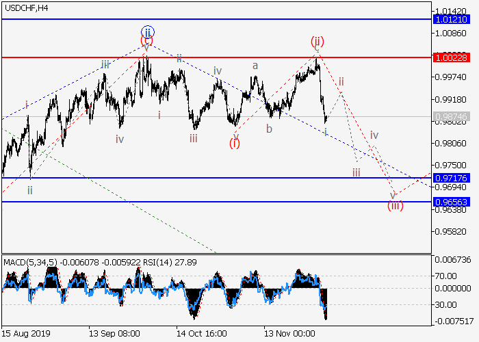 日线图中,较高水平的上行修正已发展为1的第二波ii,1的第三波iii已开始形成。目前,iii的较低水平(ii)已结束,iii的波(iii)已开始形成。如果假设正确,价格将会跌至0.9717–0.9656。该情况的关键止损水平为1.0022。
