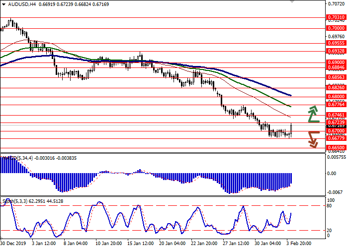 今天是亚洲市场上,澳元兑美元稳步增长,从2019年10月以来的低点回落。目前,该货币对已上涨了约0.5%,测试0.6725水平,并尝试突破。澳大利亚央行会议的结果促进了该货币对增长,如预期的那样,利率保持在0.75%。此外,技术因素和中国股市暴跌也支持了价格。由于冠状病毒传播,中国股市容易出现恐慌。昨天来自澳大利亚方面的宏观经济数据模棱两可。澳新银行1月份的招聘广告增加了3.8%,而上个月则减少了5.7%。与此同时,12月份批准的房屋建造量环比下降了0.2%,而上个月数据增加了10.9%。分析师原本预计环比数据将会减少3%。