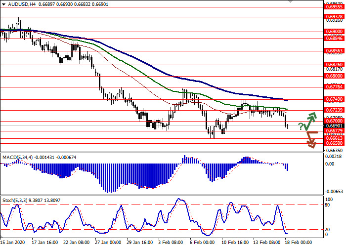 价格突破0.6677水平后,可以开设空头头寸,目标为0.6620。止损水平为0.6700–0.6710。