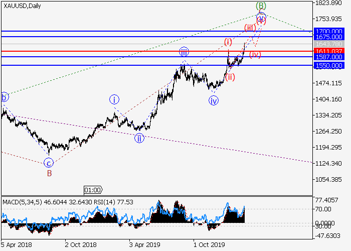 价格跌破1611.03,并在该水平以下进行盘整,可能会使价格跌至1587.00–1550.00。