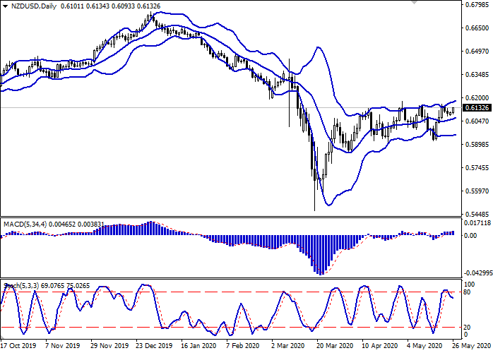 今天的亚洲市场上,新西兰元兑美元汇率持续上升,继续形成昨天形成的看涨势头。目前,该货币对已上涨了约0.45%,并正在测试0.6130水平,试图突破该水平。新西兰元在美元下行修正的背景下增长,中美关系急剧恶化后,美元面临下行压力。昨天香港再次爆发针对中国知识产权法的抗议活动。美方坚决反对通过这项法律。一天前,美方还对33家中国公司实施了额外的制裁,指责他们侵犯人权和自由。
