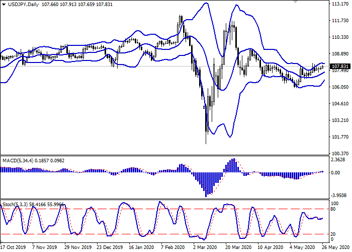 日线图上,布林带正适度增长。价格区间正在收窄,反映出短期交易的不确定性。平滑异同移动平均线指数增长,保持弱买入信号(图柱位于信号线以上)。此外,该指标正试图在零线上方盘整。随机指标长期以来一直保持水平方向,超短期内呈基本动力平衡状态。