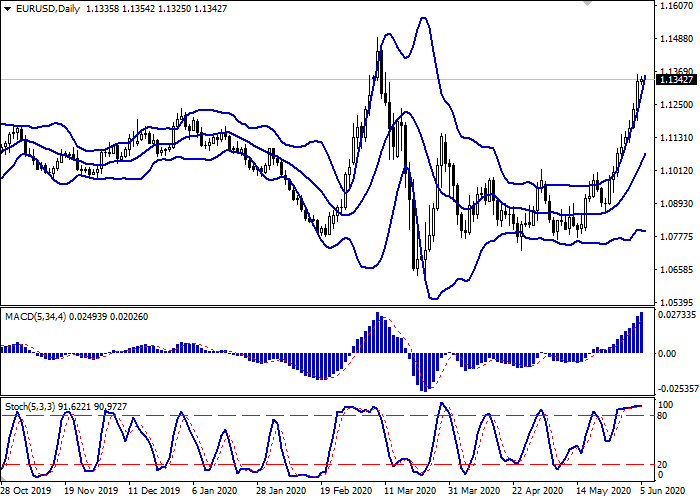 日线图中,布林带呈活跃增长。价格区间扩大,为看涨动态开辟了通往局部新高的通道。平滑异同移动平均线指标正在增长,保持稳定的买入信号(位于信号线上方)。随机指标在达到最高点后,反转进入水平面,表明超短期内倾向于发展修正下降趋势。