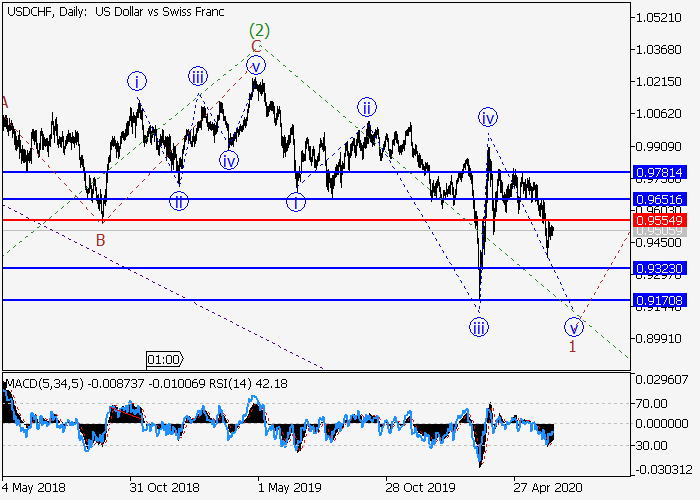 修正期间,可以在0.9554水平以下开设空头头寸,目标为0.9323–0.9170。实施期:7天以上。