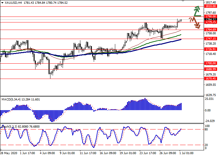 价格突破1790.00水平时,可以开设多头头寸。获利水平为1820.00。止损水平为1770.00。