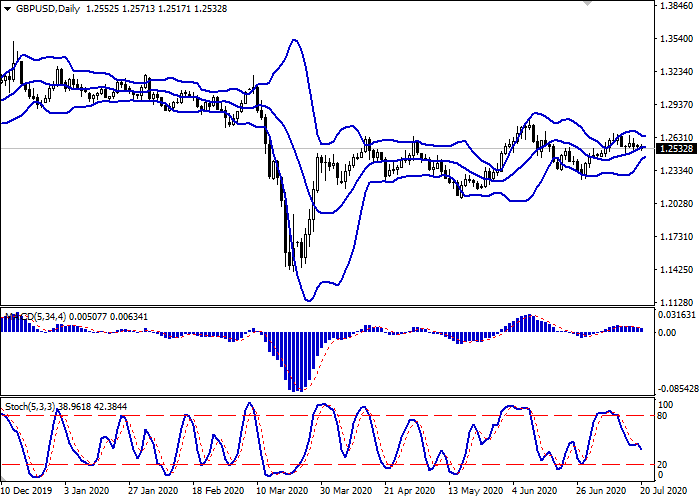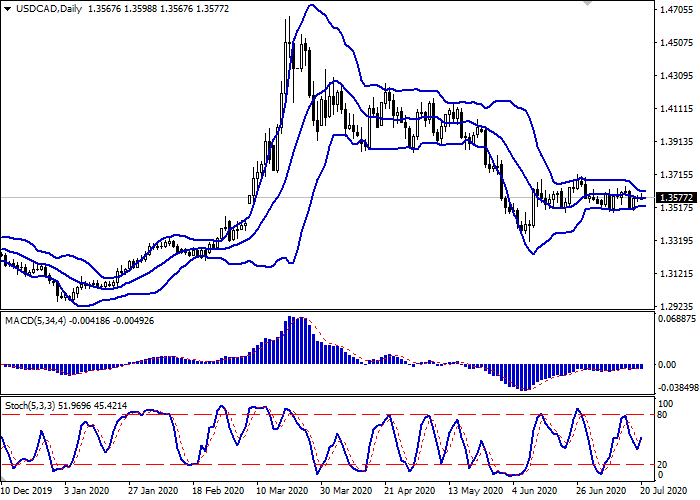 日线图上,布林带呈横盘走势。价格范围在相当狭窄的范围内盘整,反映了短期内交易动态模糊。平滑异同移动平均线指标正在增长,保持弱买入信号(图柱位于信号线上方)。随机指数在短暂下跌后也反转上行,对上周交易的看涨收盘作出反应。